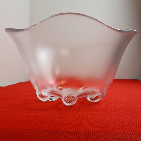 Holmegaard Fruits" skål i matteret glas med fødder formet som forskellige frugter. Skålen er designet af Allan Scharff.