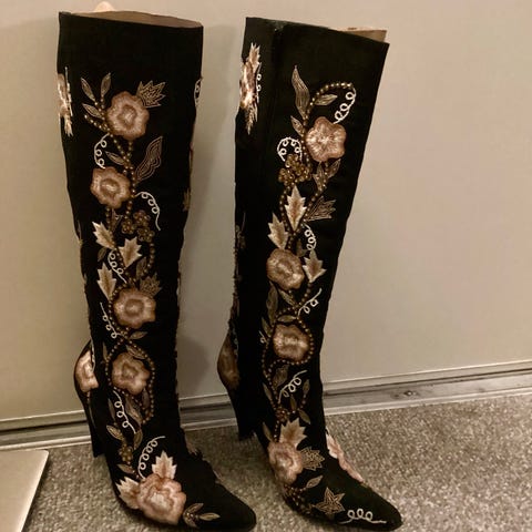 Støvler, str. 37, Christina Floreani, Mørkeblå, Ruskind, rågummi, Ubrugt, Smukkeste Christina Floreani støvler med broderier på skaft. Indvendig kilehæl på ca 3-4 cm.
