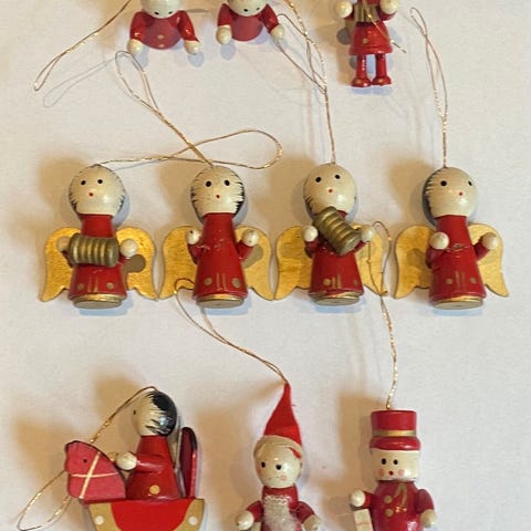 Julepynt, forskelligt gammelt julepynt & 1 enkelt nyt