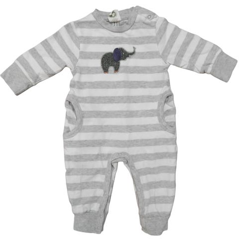 Nattøj / natdragt / heldragt. Mørkeblå med lille tryk. Lukkes med trykknapper. Har fødder i (stoffet er lidt fnulleret på fødderne).