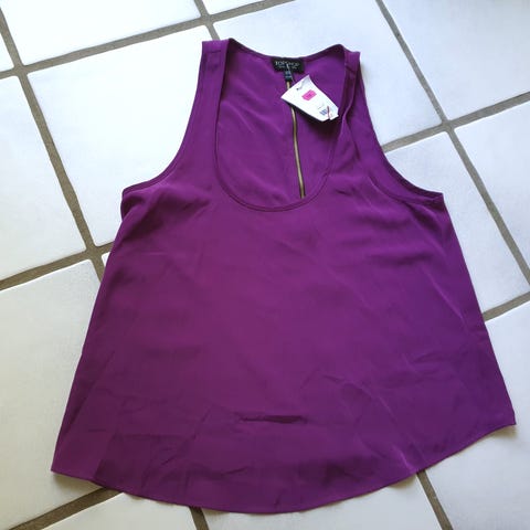 Lilla top fra Project Unknown str. XS. Har justerbare stropper. Toppen er forret og silkeagtig. Materiale Polyester. Bred fra ærmegab til ærmegab 42 cm.