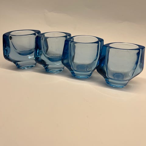 Aqua blå vase signeret PL 16514. Højde 13,5 vm
