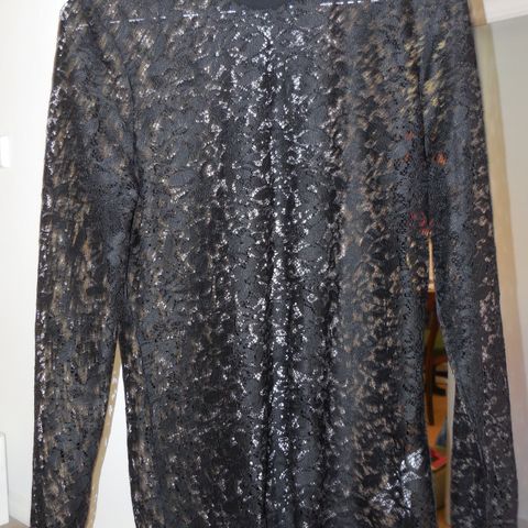 Bluse, Only, str. 36, Sort, Næsten som ny, Sort blonde bluse str 36 med lange blonde ærmer. 2 små luk knapper i nakken. Brugt få gange. Længde fra ærmegab og ned ca 33 cm, bredde ca 45 cm (dvs 90 omkreds). Kan evt sendes i henhold til takster