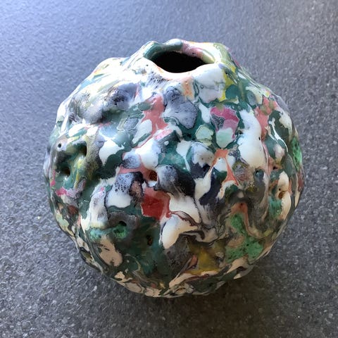 Morten Løbner Espersen has brought a new energy to the tradition of ceramics through a 20-year exploration of his object of choice, the vessel. He focuses on the simplicity of the form through variations of this archetype that balance opposing principles: simple shapes and complex surfaces, or complex shapes and simple surfaces. Whether his vessel is of modest, cylindrical nature or a chaotic, writhing mass of layered glazes, Espersen strives to create a quality in glazing comparable to geological happenstance. Likened to the frothy, volcanic surfaces of Lucie Rie’s stoneware, the organic and protruding forms of Axel Salto’s “budding” vases, and a Patrick Nordstom brilliance in glazing, Espersen’s clay forms exercise the full potential of his self-imposed neutral starting point.