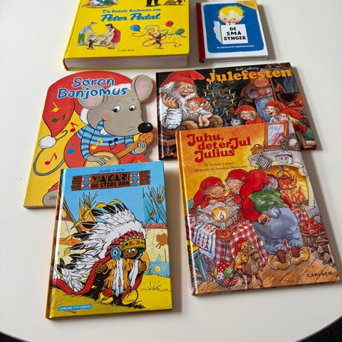 BØRNEBØGER med både tekst og mange billeder. Alle i fin stand, De egner sig til oplæsning, og kan læses selv af større børn. De kan købes hos mig i Nivå eller sendes med GLS. Jeg sælger bøgerne på foto 1, + 2 til samme pris pr. stk. for 15.- . Bøgerne på foto 3-4, 5-6, 7 og 8. for 35.- pr. stk. Bog priser fra: