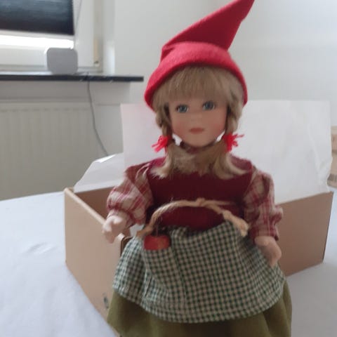 Frigast Go morgen nisser Trille & Marius, Trille og Marius med æsker og certifikat. Trille har en lille limning ved fødderne. Ses kun bagfra.
