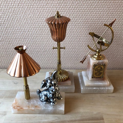 Olielampe, Ukendt, Gammel Lille olielampe i kobber med marmor fod. Har lidt patina.
