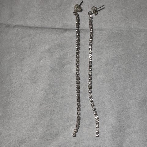 Øreringe, forsølvet, Rhinsten, Elegant lange øreringe lilla skinnende rhinsten