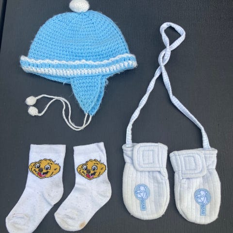 Andet, Strømper, hjemmesko, huer, vanter, Diverse, 120 par børnestrømper, 20 huer, 12 par indesko og 8 par vanter. 60 par strømper til 50 kr eller alle 120 til 90 kr. 10 huer 50 kr, 10 indesko 50 (minus Bobux og skind). 5 par vanter 25 kr. Eller alt til 200 kr :-) Sender gerne!