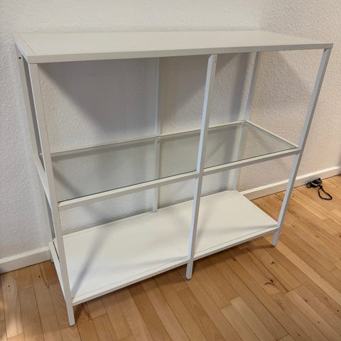 Reol, Ikea Vittsjö, Pæn, enkel og vedligeholdt reol med glas plade.