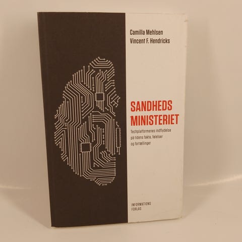Sandhedsministeriet, Camilla Mehlsen og Vincent F Hendricks, emne: filosofi, Sandhedsministeriet - Techplatformers indflydelse på tidens fakta, følelser og fortællinger. Af Camilla Mehlsen og Vincent F Hendricks. Hæftet. Informations format, 2021. Nyt og flot eksemplar