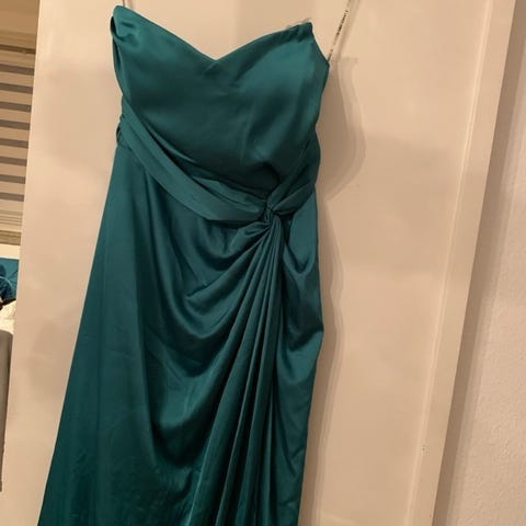 Festkjole, Grøn kjole, str. M, Kaki grøn, Satin, Næsten som ny, Grøn maxi festkjole sælges, da den ikke bruges længere. Kjolen er i meget god stand, da den kun er blevet brugt i få timer indendørs. Kan passes af en medium large.