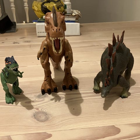 3x Dinosaur i medium størrelse, andet mærke, i meget fin stand: