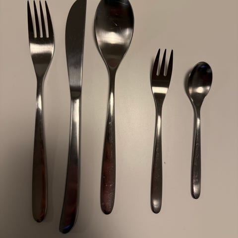 1 smørekniv 19 cm og 1 kaffeske 11 cm.