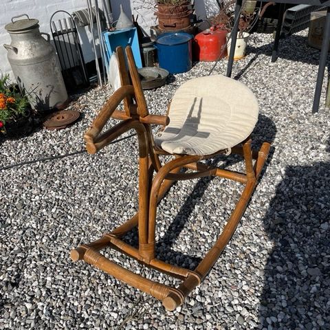 Gyngehest, Vintage gyngehest i bambus, Virkelig flot og velholdt gyngehest I bambus. Virkelig smuk med et lammeskind på sadlen eventuelt