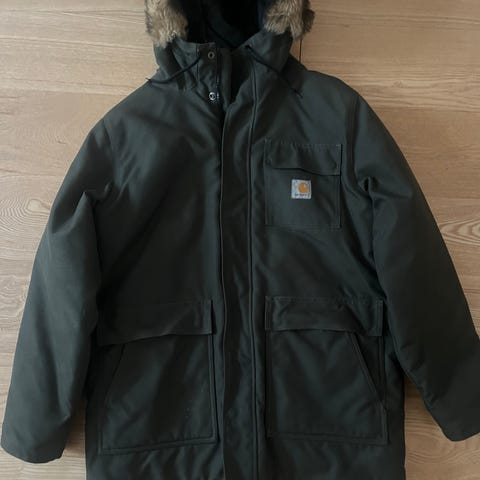 Parkacoat, str. S, Carhartt , Blå, Nylon, Næsten som ny, Carhartt Bering parka med dun fyldning, en lækker varm frakke der er næsten som ny, pelskant på hætte kan knappes af