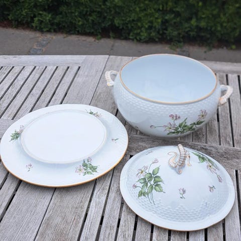 Suppeterrin og kartoffelskål, B&g hvid anemone
