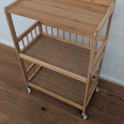 Serveringsvogn bambus, Retro serveringsvogn i bambus m. hjul.