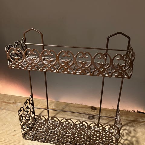 Lille metal hylde. Den kan monteres på væg.
