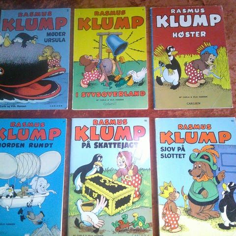 3) Rasmus klump bygger skib, Carla & Vilh. Hansen, paperback, godt brugt, fra Carlsen if, 1973, 32 sider. Kr. 25,-