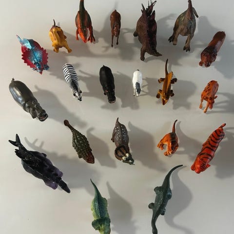 Dyr, 8 dyr, 8 dyr. 5 dinosaur og slange skorpion og skildpadde. Længde på slangen 24 cm. Højde på den største dinosaur 10 cm. Samlet pris 200 kr. Se også mine andre annoncer. Hv123