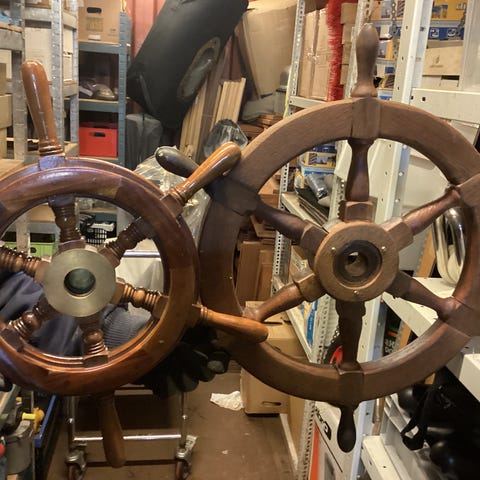 Spaderor i massiv Bronce til montering på agterspejl. Ror 32 cm bredt og stikker ca 60 cm . Rorstamme med rorpind til montering bag på spejlet. kræver ca 8 cm hul i spejl. Roret med rorbrønd vejer ca 47 kg ren bronce.