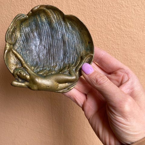 Art Nouveau Bronze Relief Skål/Pindish, Geschützt, Smuk gammel østrisk bronzeskål med kvinde i relief.