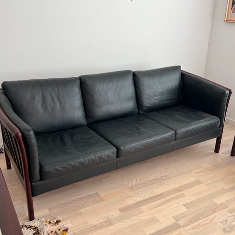 Sofagruppe, læder, 5 pers. , Clausholm, Clausholm sofagruppe 3+2 Pers. Special design fra 2022 i sort okselæder og med ben i lys eg.Nypris 35.400,-