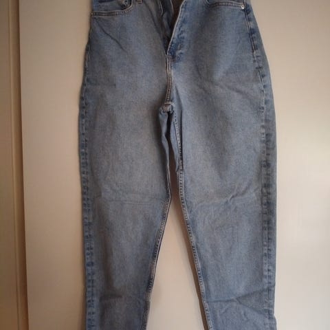 Jeans, H&m, str. 40, Blå, Bomuld, Næsten som ny, Jeans med vidde i benene str 40 med lommer på begge bukseben, cargo style