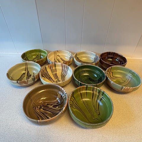 Nostalgi , sommerhus, kolonihave, morgenmadsskåle , slikskåle, skåle til mad, indretning , borddækning , emalje, vintage hjem, retro hjem