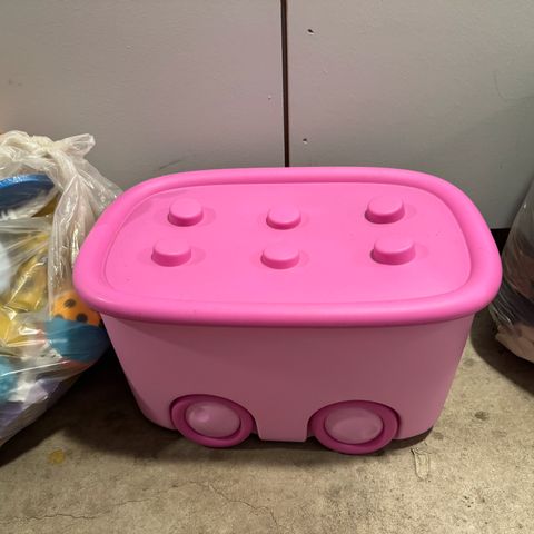 1 stk Robust opbevaringskasse med hjul, som er meget funktionelt. Kan godt bruges til at opbevare lego, legetøj, tøj eller lignende.