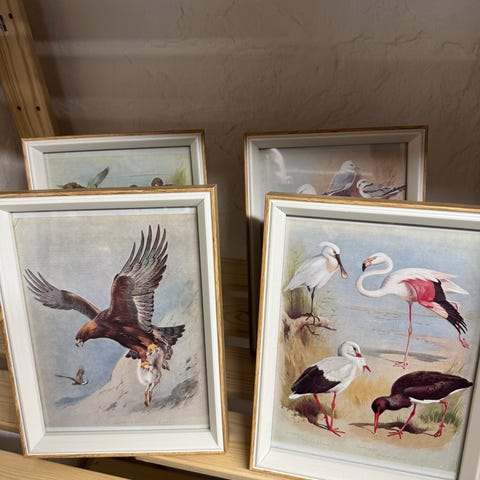 Indrammede billeder af fugle, 2 indrammede billeder af fugle - måske Sneppe og Storspov.