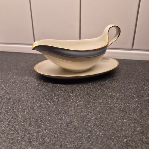 Porcelæn, Sauceskål , Kjøbenhavns porcellains maleri Fredensborg, Flot sauceskål af mærket Fredensborg, er i rigtig fin stand, den er hel og pæn igen skår, og guldet er pænt. Kommer fra et ikke ryger hjem.