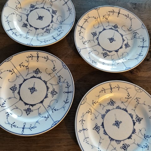 Fajance, 4 dybe tallerkener , Villeroy & Boch, musselmalet, Diameter 23 cm.