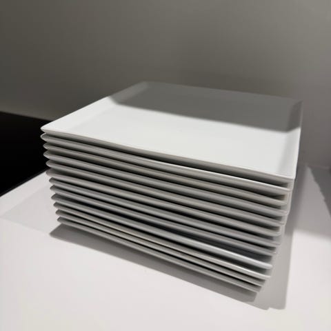 Flotte som dækketallerkner , med en anden tallerken oven på .