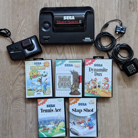 Komplet SEGA Game Gear konsol med enkelte overfladiske ridser. Bemærk at konsol ikke fungerer og formentlig kræver et capacitor kit for at køre igen. Æske har lettere slid men fremstår pæn og komplet med låg, manualer og insert.