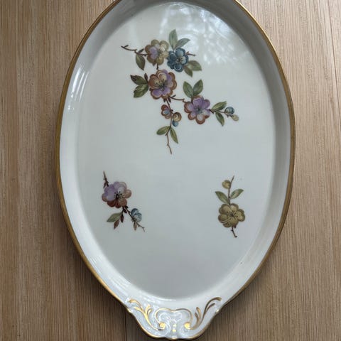 Porcelæn, Porcelæn fade, KPM, København Porcelæn Maleri, Vintage ældre flotte ovale fade fra København Porcelæn Maleri ( Grøn Vallø 933 ).