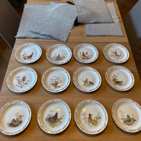 Fugle motiver er Gråænder Fasanhane Ur fugle Agerhøns Sneppe Vagtler.