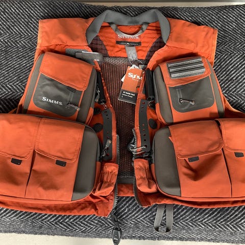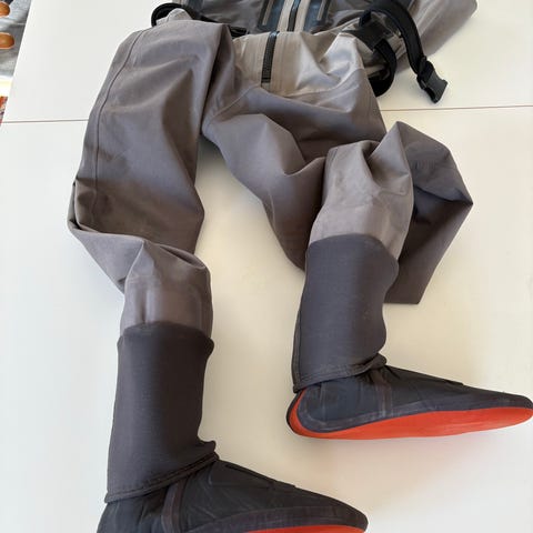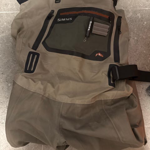 Fiskebeklædning, Simms, Købt for nogle år siden, men stoppede kort tid efter med at fiske. Så brugt meget få gange, som også kan ses på jakken, som ny.