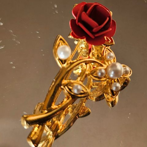 Broche, bijouteri, Smuk guldfarvet broche, hvor man kan se stoffet igennem den midterste del.