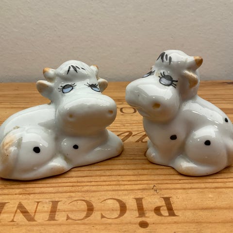 Salt og peber med ko som motiv.