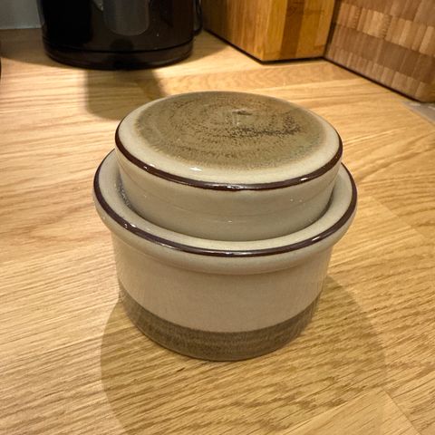Peru sukkerskål i stentøj fra Bing og Grøndahl.