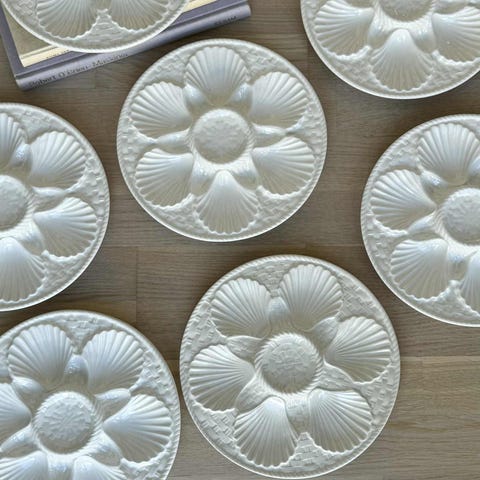Østerstallerkener fra franske Moulin des Loups. Ø 24. Alle i perfekt stand.