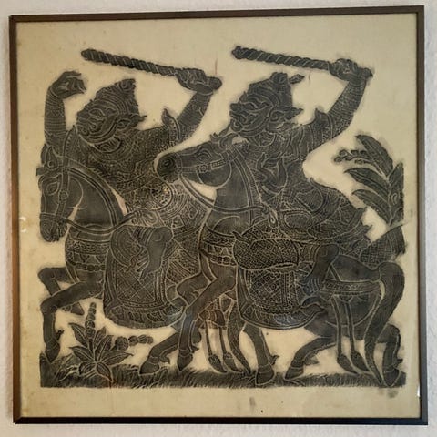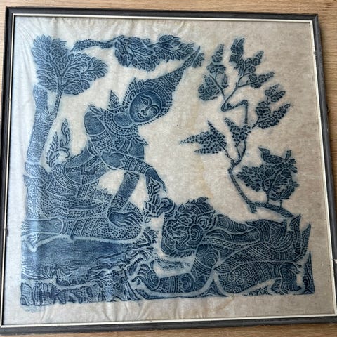 Retro thai tempel tryk, Thailandske templer, motiv: Gudefigurer fra Thailand