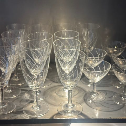 Glas, Gamle Koniske Cocktail / Vinglas (12 Tilbage), Smukke gamle koniske cocktail eller hvidvinsglas med slibninger.