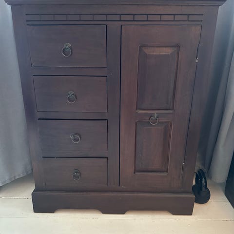 Kommode, Egetræ og væghængt og skal sælges billigt og hurtigt giv et bud højde 61 cm bredde 45,5 cm dybde 42,5 cm