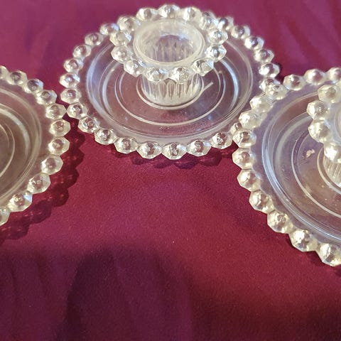 Lysestager, 2 ens små lysestager fra gammel tid. Jeg mener de stammer fra min mormors tid. Der er ingen skår i dem. Almindelige juletræslys passer i størrelsen til lysestagerne, se sidste foto.