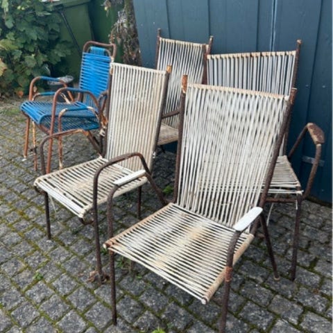 Andre samleobjekter, 6 RETRO spaghetti stole GAMLE, Samlet salg