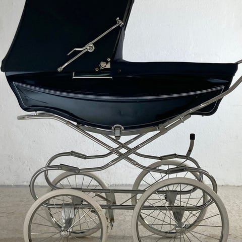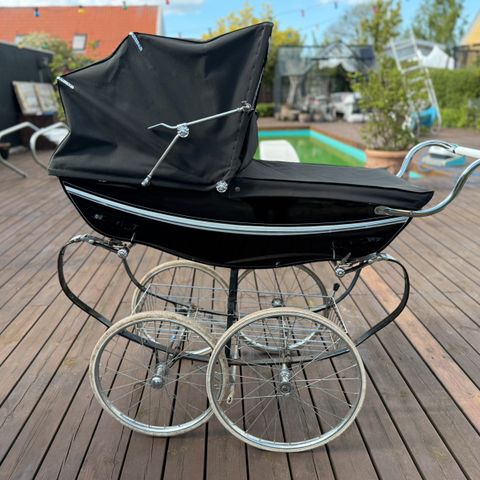 Barnevogn, Silvercross, liggemål (cm): 93, Stor, bred og rummelig Silver Cross barnevogn til sommerhus, altan, mv. fx. Indvendig bredde 44 cm. Perfekt når barnet sover ude i frisk luft. Underlag, madras, vådliggerstykke, faconsyet lagen, myggenet og regnslag medfølger. Overdel kan nemt afmonteres og stel klappes sammen. Noget rust på metaldele men alt fungerer. Rust kan nemt fjernes. Retro og sjælden model. Kan AFHENTES i Vejby Strand, Nordsjælland.