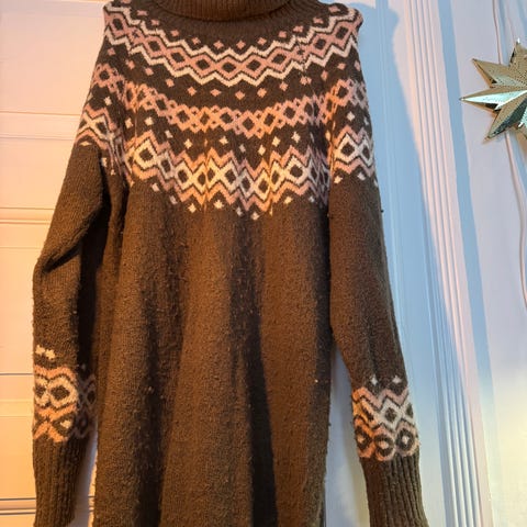 Strikkjole, K9, str. One size, Grøn og creme, Næsten som ny, Pæn strik kjole lang sælges